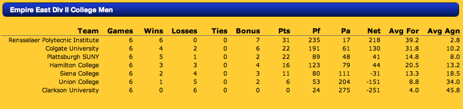 Return to Leagues Standings Index
