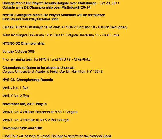 2011 Collegiate Women's D2 and D3 Playoff Results
