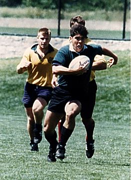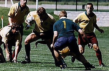Ed McDowell of Brown counter attacks from the fullback position. Ed was selected All American